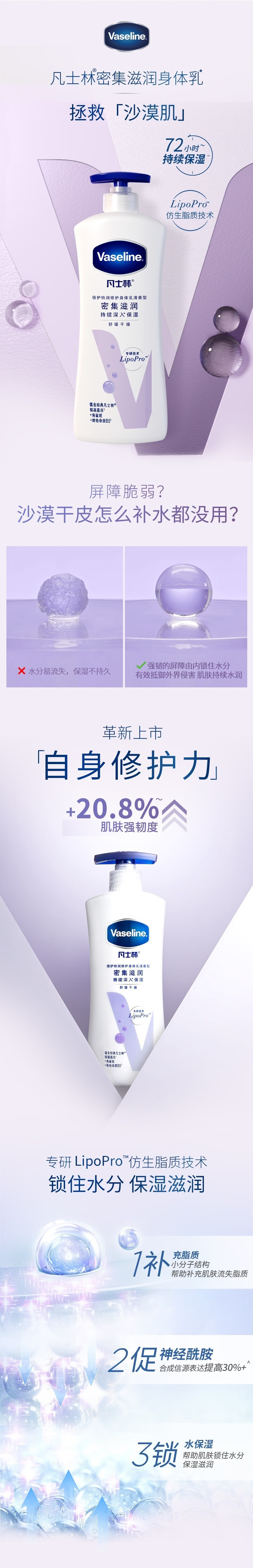凡士林身体乳大白罐400ml密集修护滋润 补水保湿持久留香 男女士通用
